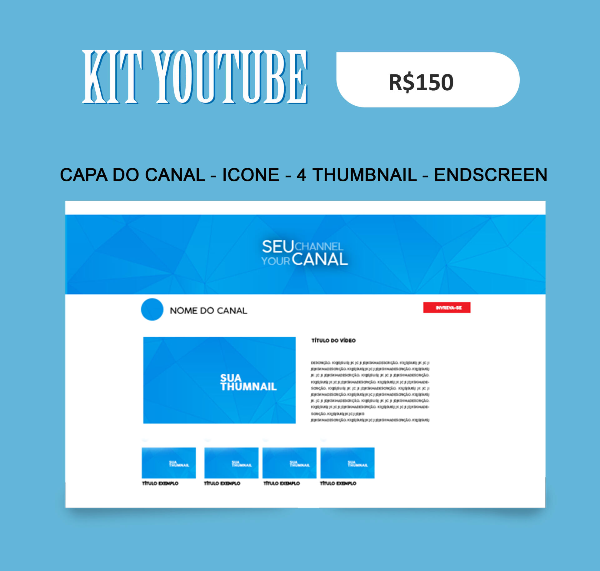 -Kit Youtube completo é entregue com arquivos editáveis (PSD).